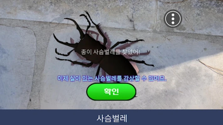 2.AR 카메라로 종이 작품을 촬영하여 내가 만든 종이 장난감(paper toy)을 등록합니다. 3.AR Bug 증강 현실 앱으로 살아 있는 곤충을 감상해 보세요, 4 8종의 곤충을 등록하고 앱 화면에서 보고 싶은 곤충을 선택 할 수 있어요.
