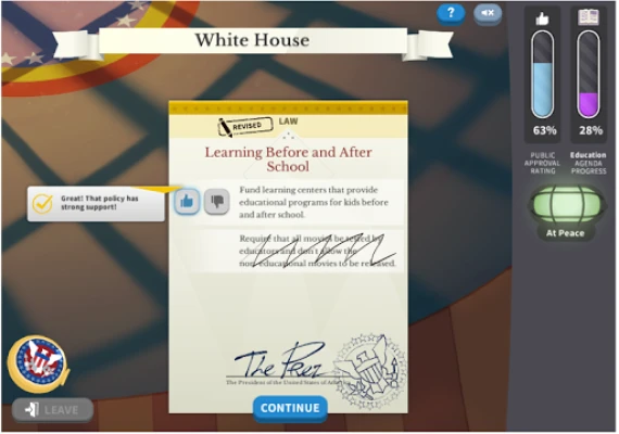Played over 3.5 million times on iCivics.org, this NEW and IMPROVED version of Executive Command includes the following features: