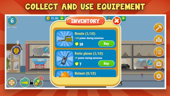- Collect nozzles, helmets or axes to complete rescue missions easier.