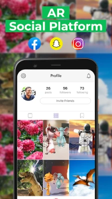 Share your augmented reality world using your location or connect with friends on social media, and let your friends experience your imagination. Share augmented reality videos, discover new videos and be inspired by other creations featured in Leo AR.