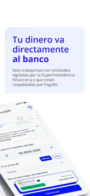 Con nuestra aplicación, puedes simular diferentes escenarios financieros, ajustando plazos y montos de inversión de acuerdo a tus necesidades y metas personales. Nuestra interfaz intuitiva te guiará a través del proceso de apertura de tu CDT de manera rápida y segura, sin la necesidad de visitar una sucursal bancaria.