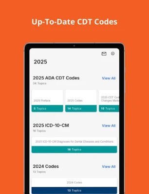 Don’t risk rejected claims by using outdated codes. Get the accuracy of the latest CDT codes with the convenience of a mobile app! The CDT App includes complete CDT codes for 2024 and 2025 and ICD-10-CM codes specific to dentistry. Quickly search by keyword, category or code.