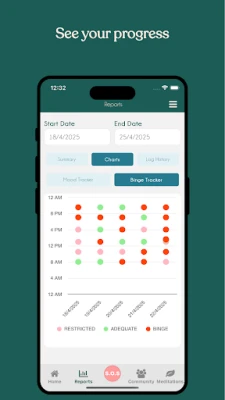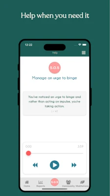On the path to recovery, you will likely experience urges to binge. While urges can feel overwhelming and irresistible, it’s important to know that all urges will rise to a peak and then gradually decrease in intensity. The Bertie app uses a unique SOS support tool, to help you manage intense urges. In these critical moments, Bertie guide you step-by-step to get out of auto-pilot, calm your nervous system, and respond with intention.