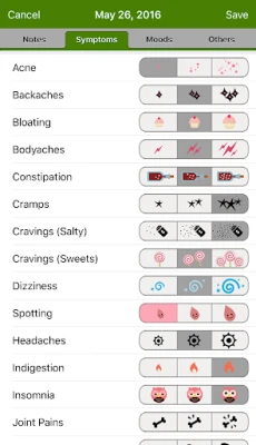 * Track advanced fertility features such as cervical mucus and positions.