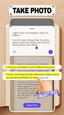 Just finished a powerful paragraph? Tap the Scan button, snap a picture of the page you’re reading, and select the text you want to save.